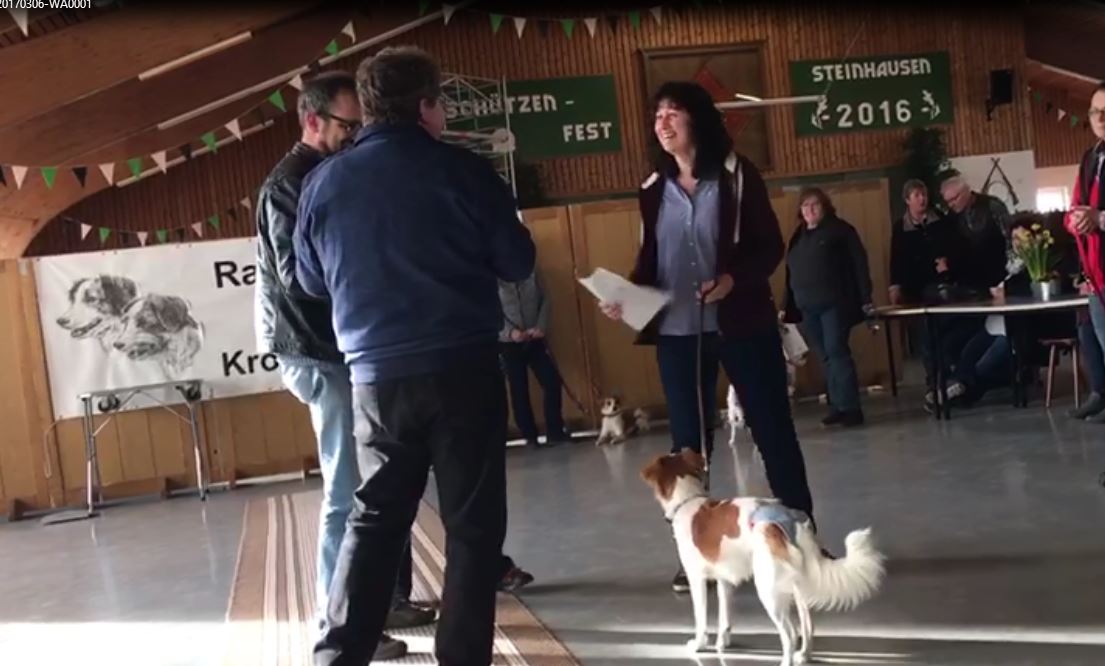 | Caramell (21 Monate alt) wurde am 5. März 2017 in Steinhausen ohne Auflagen angekört. Sie wird somit im Sommer/Herbst 2017 die Mutter unseres D-Wurfs werden. | |